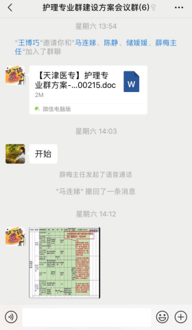 寒假期间,全校师生众志成城抗击新冠肺炎,护理专业群积极行动,利用信息化手段,扎实推进高水平专业群建设工作。2月15日下午,由护理专业群建设项目负责人,护理系薛梅副主任主持召开了高水平专业群建设微信电话会议,6位项目成员参加了会议。首先,薛梅副主任提出两点要求,一是工作不拖延,要积极克服疫情防控带来的工作不便,充分利用网络平台办公,严格按照既定双高工作计划,准时完成工作任务。二是质量不降低,要严格对...