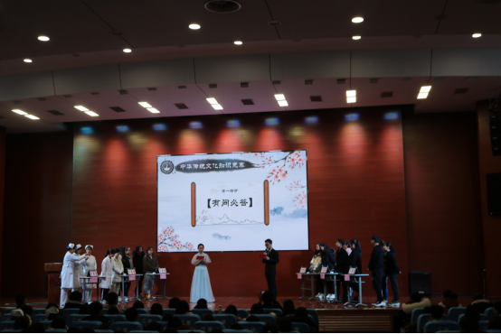 在以各系、班级为单位组织的中华优秀传统文化班会、晨读、知识竞赛等活动基础上,各学工支部选拔出两支优秀的学生代表队参加了12月4日举行的“中华优秀传统文化知识竞赛”。校党委副书记、副校长左红应邀出席,学生工作处及学工支部负责人、全体专兼职辅导员老师一同到场。此次参赛的六支队伍分别是护理学工支部的“天使队”、“新秀队”,医学口腔公卫学工支部的“懿文队”、“幸福家人队”,药检及医疗技术学工支部的“驭梦队”、“心连心队”。比赛分为第一轮的知识竞赛和第二轮的剧目表演,两部分得分按比例算出最终比赛成绩。经过“有问必答”、“先声夺人”、“险象环生”三个环节的比拼决出第一轮知识竞赛的总成绩,新秀队暂时领先。第二轮的剧目展示中,学生们在六位专职辅导员指导下编排的短剧与观众见面。大家围绕“仁义礼智信孝”为主题展开表演,有的通过故事弘扬助人为乐的正能量,有的表现医生的人道主义精神,最终新秀队的《平凡之义》剧目表演获得全场最高分。护理系学工支部获得优秀组织单位奖,柴玉琢老师获得优秀指导教师奖。此次活动让学生充分感受到了中华优秀传统文化的博大精深,从经典中汲取民族精神的源头活水,调动了学生学习中华优秀传统文化的热情,使同学们走进了中华传统文化的优美氛围,欣赏诗词绝句,体会古人所描述的意境,领略中华优秀传统文化独有的魅力。
