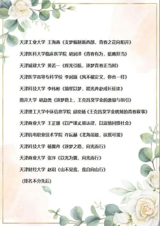 我校获得2023-2024学年度“王克昌奖学金”的李润颖同学积极投稿,结合入学以来,其在专业学习,科研比赛,综合素质,文艺体育,社会实践和个人成长等诸多方面写出的作品《风不被定义,你也一样》经由基金会专家评审小组评分,在来自全市50多所高等学校,百余名学生的作品中脱颖而出,被评选为12篇优秀文稿之一,将发布在SM调教市教育发展基金会公众号中。