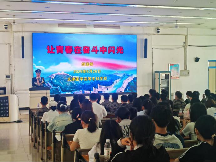 为深入学习贯彻习近平新时代中国特色社会主义思想,全面贯彻落实全国教育大会精神,落实立德树人根本任务,聚焦传承和弘扬中国共产党人精神谱系,充分发挥红色资源育人功能,引导广大学生传承红色基因,我校于2025年5月26日上午10点在教学楼B203教室开展“纪念反法西斯战争胜利80周年——英模进校园”宣讲活动。本次活动邀请到一等战功荣立者、陆军战略战役训练专家、陆军军事理论专家胡国桥大校以《让青春在奋斗中闪光》为题,为我校师生开展宣讲活动。我校入党积极分子培训班学员、“青马班”学员、退役士兵大学生代表和专职辅导员等400名师生代表参加本次活动。