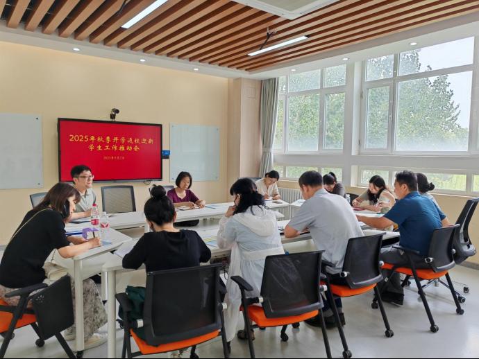 为做好开学相关准备工作,党委学工部部长张鑫首先向大家公布了新生辅导员的具体安排,并对迎新工作具体安排进行详细说明,对2025级新生的入学教育工作做了详细安排,特别强调新生班级的日常管理和思想教育工作要有态度、有温度、有深度,抓好新生入学的关键时期。此外,他向大家传达了市教育两委关于做好秋季开学季维护教育系统安全稳定工作的相关要求以及市教委相关会议的精神,要求各院系结合实际情况将会议精神落实到日常学生教育管理与服务中,进一步巩固辅导员深入教室、宿舍的工作机制,扎实开展谈心谈话,加强学生安全教育,帮助学生尽快完成角色转变,适应校园生活。