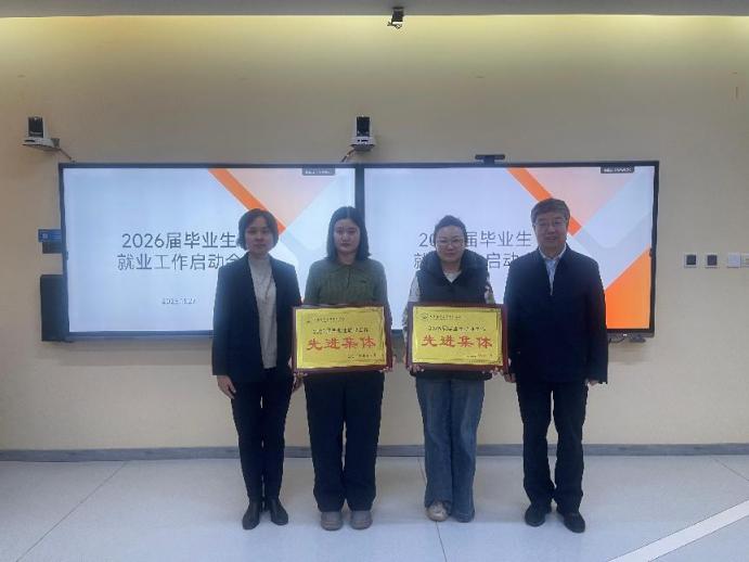 会上,学校对2025届毕业生就业工作先进集体——卫生健康管理学院和医学技术学院进行了表彰,校党委舒珺书记、张彦文校长为获奖集体代表颁发奖牌。