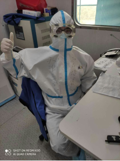 2006级检验杜双双,在疫情暴发的第一时间,主动请缨SM调教市第三中心医院在发热门诊做检验工作。发热门诊有普通发热病人和疑似病人,他们都需要做血常规,便常规,尿常规和血糖,所以检验工作的压力非常大。从进入发热门诊那一刻起,她就像一个不知疲惫的陀螺在一直旋转着,一个人当班,穿着隔离衣,带着护目镜,口罩,手套,全面防护。在应急医疗物资紧缺的现状下,为了节省防护服,不断挑战生理极限,8-9个小时穿着尿不湿上班,当班期间不敢吃饭,不敢喝水。她顶着巨大心理和生理压力,奋战在疫情一线。