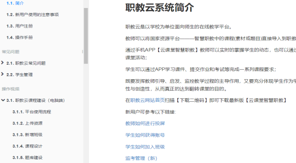 职教云使用操作手册可登录职教云首页:https://zjy2.icve.com.cn/,点击帮助中心(图7),即可查看相应操作视频及手册(图8)。