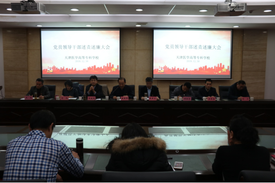 2019年12月30日下午2点,学校党员领导干部述责述廉大会在学校第五会议室召开。本次会议是为深入推进全面从严治党,强化对各级党政领导干部的监督管理,推动全面从严治党主体责任落地生根,根据《市卫生计生委党员领导干部述责述廉办法》的有关规定组织召开的,校领导班子、中层干部、民主党派、高级知识分子、教代会执委参会,会议由校党委陈振锋书记主持,驻委纪检监察组副组长侯振豪同志、正处级纪检监察员石景浩同志全程参加并进行监督。