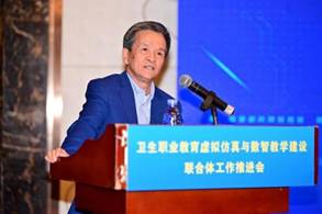 会议期间,联合体专家组专家、南京医科大学高兴亚教授作了题为《AI+虚拟仿真实训教学课程云平台建设思路》的专题报告,对课程云平台建设的思路和具体要求进行了详细阐述,分享了教育数字化转型方面的探索和实践经验。