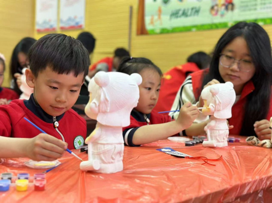 在欢声笑语中,不仅石膏娃娃被赋予缤纷生命,更珍贵的是孩子们与同学们之间建立起纯真友谊。活动接近尾声,孩子们紧紧抱着自己彩绘的作品,脸上洋溢着自豪,那是收获快乐的勋章。