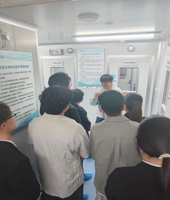 周部长为学院团队详细介绍了基因检测实验室的工作流程、实验室布局和要求、业务板块、与京东物流合作等情况,并就造成基因突变的原因等问题进行了深入交流;专业李玉芹老师就检验专业目前的办学情况、学生就业情况、实习合作意向、行业背景等情况与周部长进行了沟通交流。