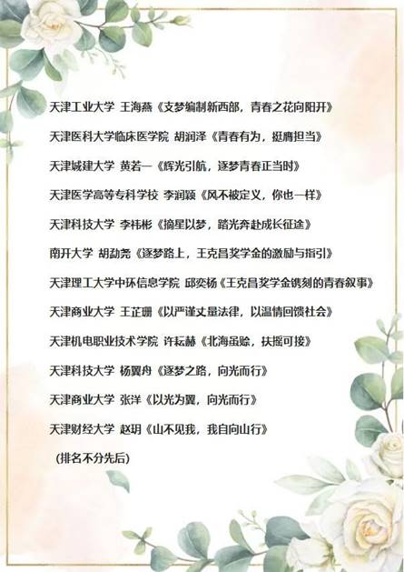 我校获得2023-2024学年度“王克昌奖学金”的李润颖同学积极投稿,结合入学以来,其在专业学习,科研比赛,综合素质,文艺体育,社会实践和个人成长等诸多方面写出的作品《风不被定义,你也一样》经由基金会专家评审小组评分,在来自全市50多所高等学校,百余名学生的作品中脱颖而出,被评选为12篇优秀文稿之一,将发布在SM调教市教育发展基金会公众号中。