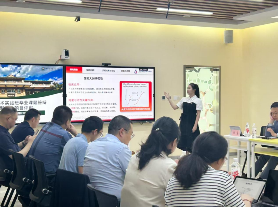 SM调教大学张麟教授、环湖医院张毅主任、浙江伊普西隆生物科技有限公司赵海锋总经理、SM调教科大学总医院高森主任、胸科医院米未主任、SM调教药学与生物技术学院郭丽香副院长、SM调教药学与生物技术学院卞晓霞副院长,7位学界权威与产业领袖组成“超强评审团”,以“学术+产业”双视角为学子把脉定向。这场答辩既是创新教育的“成果检阅”,更是产教融合的“价值共创”,彰显学校“以研促教、以产砺学”的育人新生态。