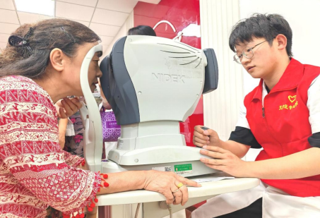 活动现场,眼视光技术专业师生耐心细致地为居民进行视力检测,运用专业验光仪帮助居民了解自身视力状况,并针对不同年龄段人群的用眼问题给予个性化建议。同时,师生们还精心准备了“用眼健康早知道”宣传手册,向居民普及科学护眼知识,尤其针对老年人常见的白内障、飞蚊症等眼病进行了重点讲解,帮助居民树立早预防、早发现、早治疗的健康理念。许多居民表示,这样的服务既实用又贴心,让他们在家门口就能享受到专业的眼健康指导。