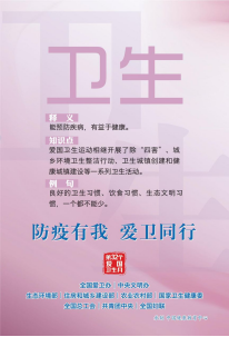 人人动手,美好家园。传承爱卫优良传统,大力开展全民大扫除,做好垃圾分类,使用卫生厕所,清理卫生死角,清除病媒生物。净化居家、工作、学习场所和公共空间,创造干净、整洁人居环境。