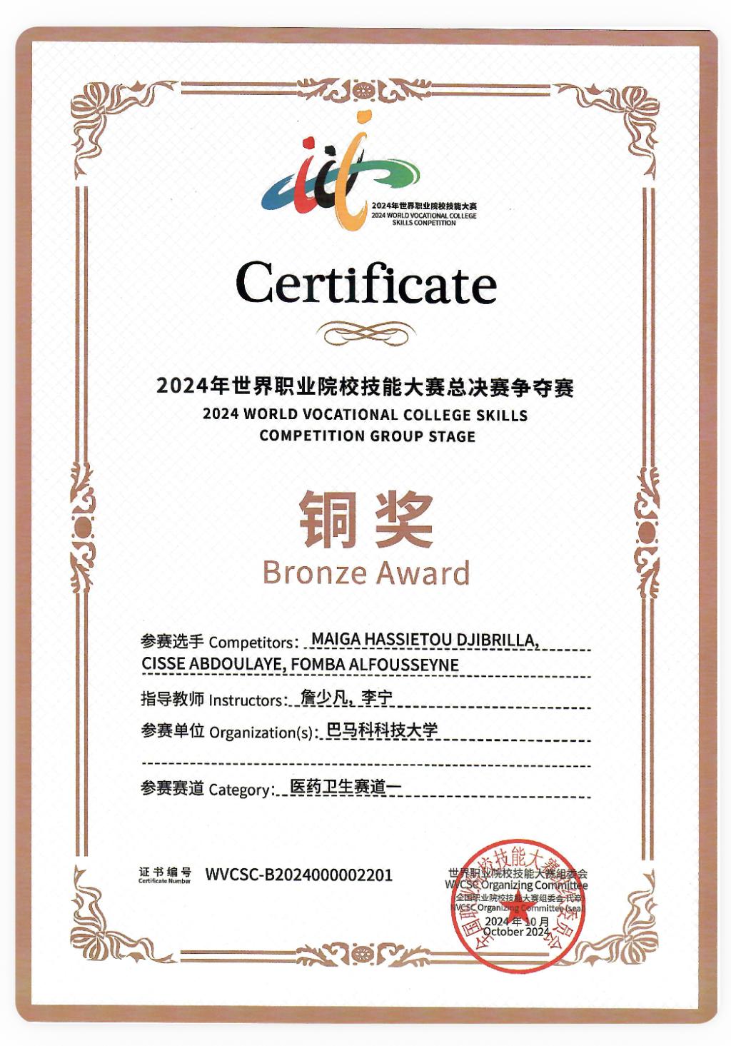 2024世界职业技术教育发展大会开幕在即,同期举办的世界职业院校技能大赛争夺赛已落下帷幕,由SM调教联合马里鲁班工坊承办院校巴马科科技大学组成的国际参赛队在医药卫生赛道比赛中荣获铜奖。